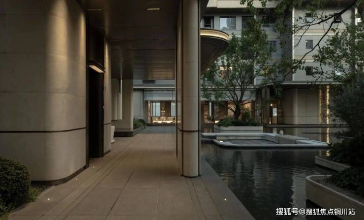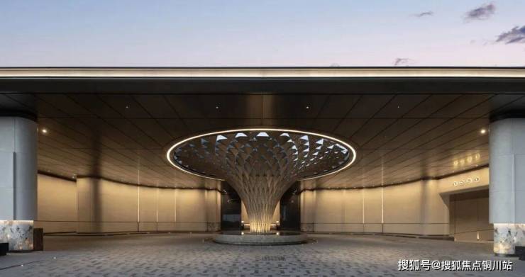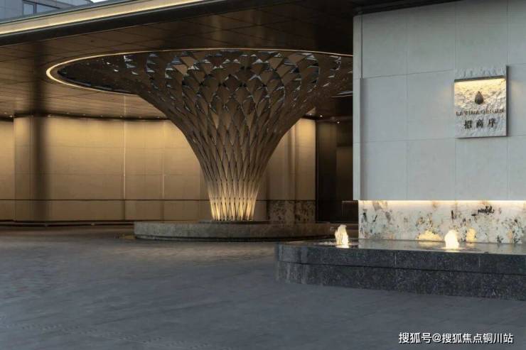 The entrance features a hotel-style roundabout drop-off area, with an art installation symbolizing "the four great gatherings under heaven" set at its center. This not only presents a noble and ceremonial facade for returning home but also echoes the golden pool base crafted with Suzhou fan craftsmanship.