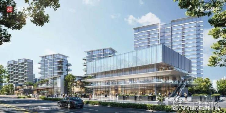项目以“垂直森林 向上生长”为设计理念,采用中式飞檐,光幕艺术立面萦绕绿植。
