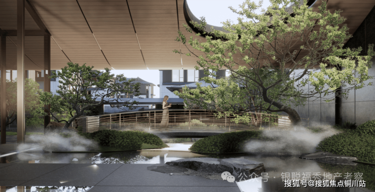江南山水中的楼阁、溪桥、汀渚、堤岸、林木、叠水、云烟等元素,都将在知屿云璟一一呈现。一道落差约10米的水瀑景墙,另一面拉开恢宏约40米的画境游廊,仿佛宋代山水画中文人雅士云集之所,上演着一幕幕精神共鸣的生活方式:春晨可师法黄庭坚,凭栏听雨,秋夜又效仿苏东坡,邀星同醉。