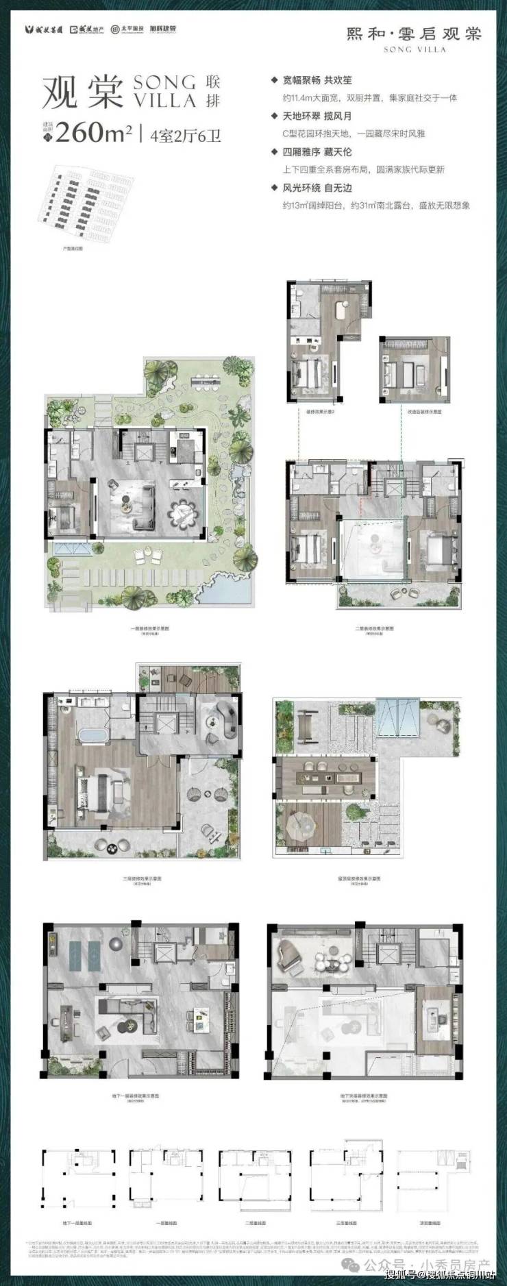 更具体点说,联排的层高1F3.4米、2F3米、3F3.1米,院子约50-200㎡,最大花园能达到200㎡,而且所有院子都可以定制围墙+门头。