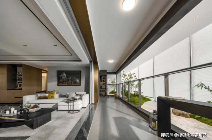 精心设计的下沉式庭院,营造出烟雨江南的氛围感。半开放庭院格局将会所置于中心,采光可从天井倾泻而下,让业主尽享松弛舒适度假体验。