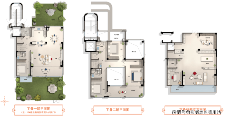 建面约278㎡的下叠,三开间朝南,单层开间足足有11.6米。更惊喜的是,除了南北双院,下叠还创新设计了下沉式庭院——