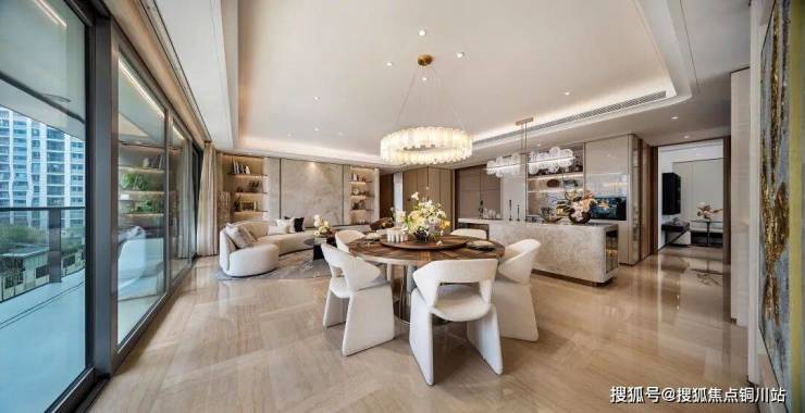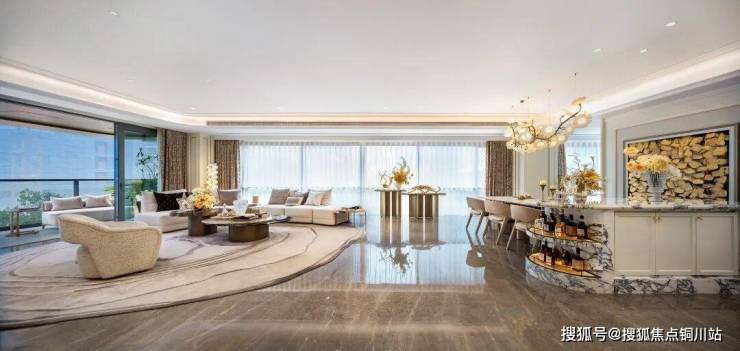 艺术会客厅也很有内涵,不是那种乍看之下的金碧辉煌感,贵的东西没有摆在明面上,而是有着不经意间的隐奢感。会客厅和外面的景观之间的门是可以打开的,室内室外连成一片,无界感让景观就成为了生活的一部分。