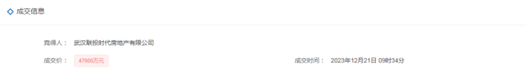 2023年12月21日,武汉联投时代房地产有限公司(隶属于武汉联投置业)底价拍得P(2023)109号地块,成交价为47600万元,成交楼面价为17000元/平。该地块被视为交职院地块的补充地块,也是本文报规的联投时代中心三期住宅中重要的组成部分。