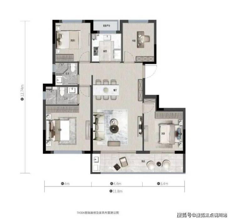 约4米主卧面宽 | 约7.8米跑道式阳台 | 约12.7米LDKG厅