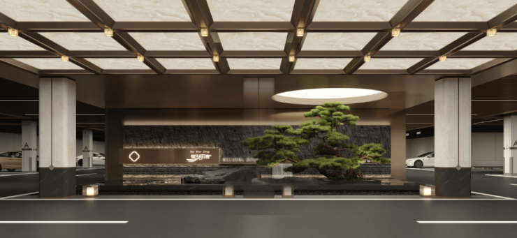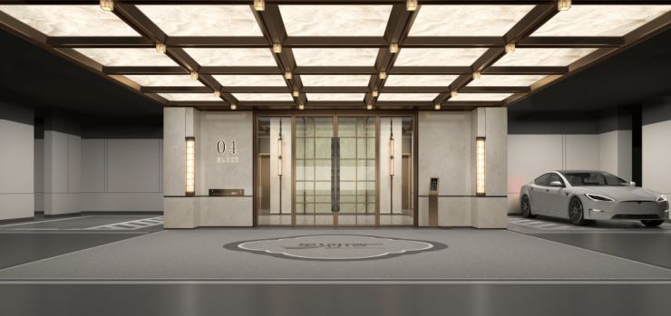 设计上,突破传统车库的单一功能定位,创新打造六大车行归家空间,将地上与地下大堂进行一体化品质美学设计。