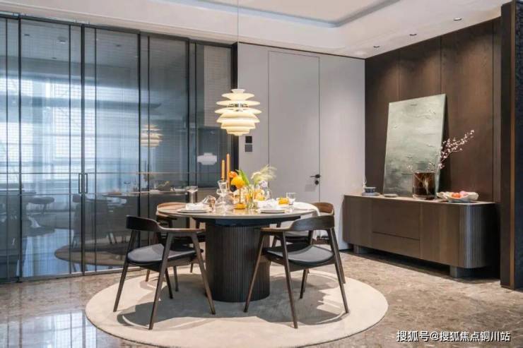 值得注意的是,该款户型并没有按照常规方式组织动线,而是通过“露台-客厅(主卧)-餐厅-厨房”连续设计,在“超画幅”视野之下,直接对话窗外的天空、庭院.....饱满的呼吸感从室外贯穿至室内。“甚至与餐厅北向相连的家政间,也是270度转角无敌采光!”