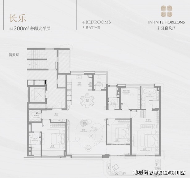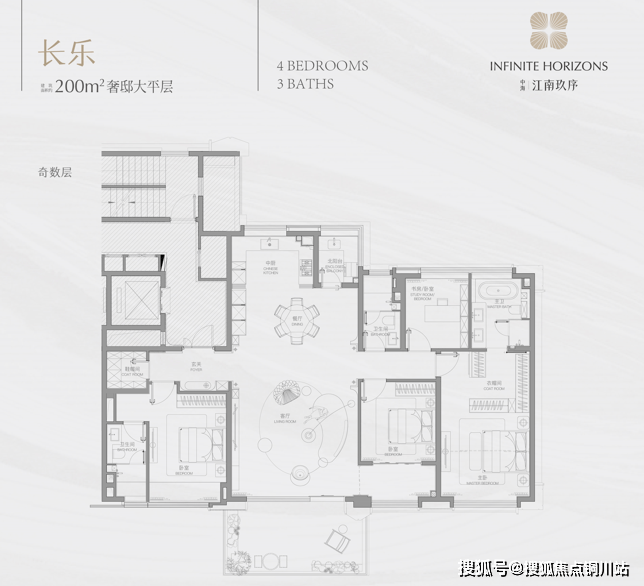 PS:无论是奇数层还是偶数层,建面约200平米的奢宅大平层都在倡导“以家庭为中心”的社交场景,以及“以人为中心”的贴心关照——比如一口气做到“三卫全明”,就已经将河西同等面积的项目甩在身后,十分难能可贵!