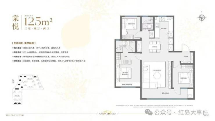 比如125㎡户型就采用经典的元宝户型布局,南向双卧分离互不干扰,LDK一体大横厅,既通透又方便全家互动。