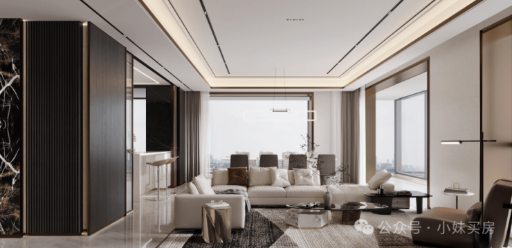 而身处其中,同时宴请20余宾客也不觉拥挤,多个家庭成员散开来也各取所需,动静分区有界,而3.3米层高标准,打开武汉豪宅的高度标准……