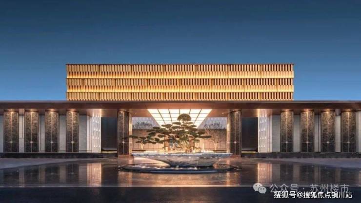 环岛中央矗立造价约150万的“玉台迎松”景观:苏派造型黑松+底座定制青玉水台,进门即显尊崇。地面铺装融入苏式纹样,酒店式无雨落客体系,隐奢气质已经到位。