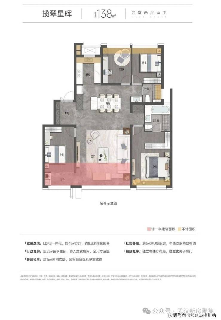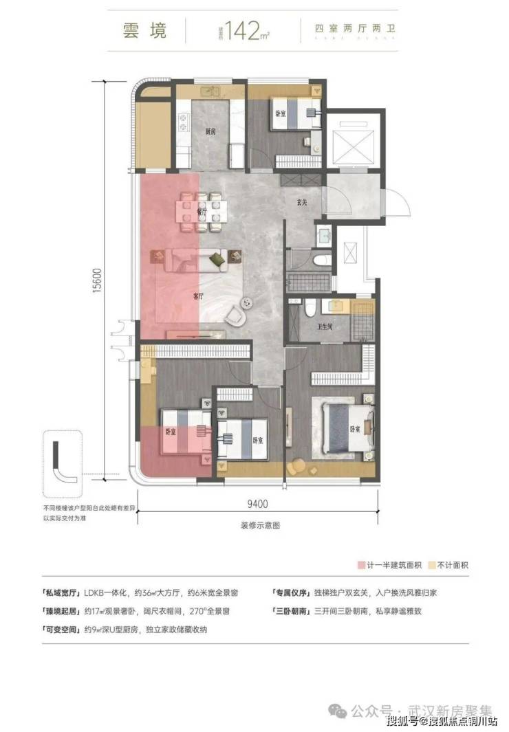 🔹准四代户型设计,实现约93%-103%超高得房率,营造“270度全景舱”、“双主卧奢阔套房”、“LDKB+X无界空间”、“三开间阔绰尺度”等,呈献湖滨美学作品。