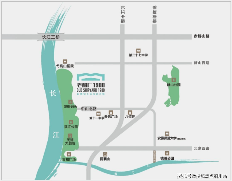 老船厂1900长江序位于镜湖区滨江板块,作为承载江城文化经济腾飞的发源地,这里拥有得天独厚的区域优势,不仅坐拥芜湖黄金江岸线,同时也是链接整个芜湖的历史、文化、工业、现代业等,目前该板块优质资源高度聚集,交通、商业、景观、教育、医疗等十分完善。