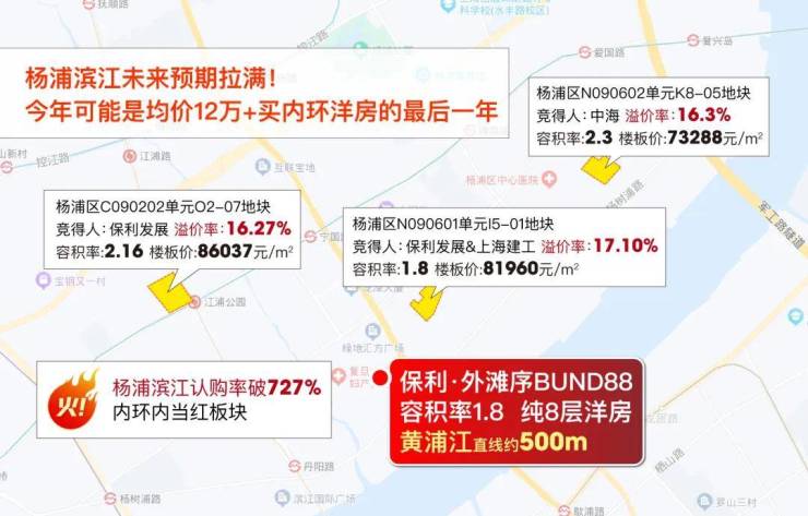 占位杨浦滨江内环内CAZ地段,黄浦江直线距离约500米!上海臻稀土地价值BUFF全部叠满,在顶豪市场实属罕见!