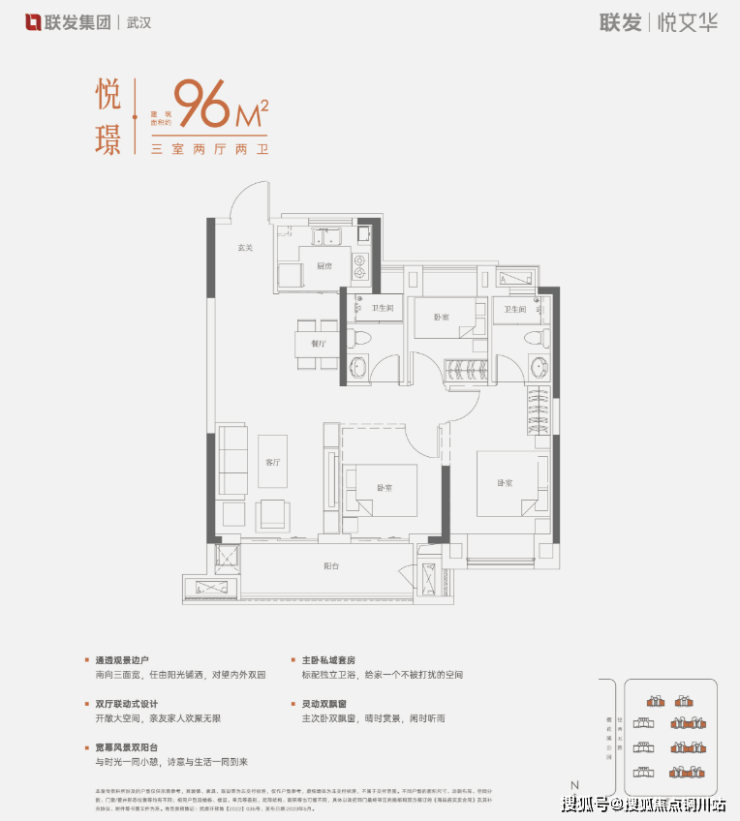 另外,联发·璞悦府有少量建面约95平现房在售。该户型是功能性不错的三房两卫,还做到了三开间朝南、动静分区。房源详情可添加文末置业顾问咨询。