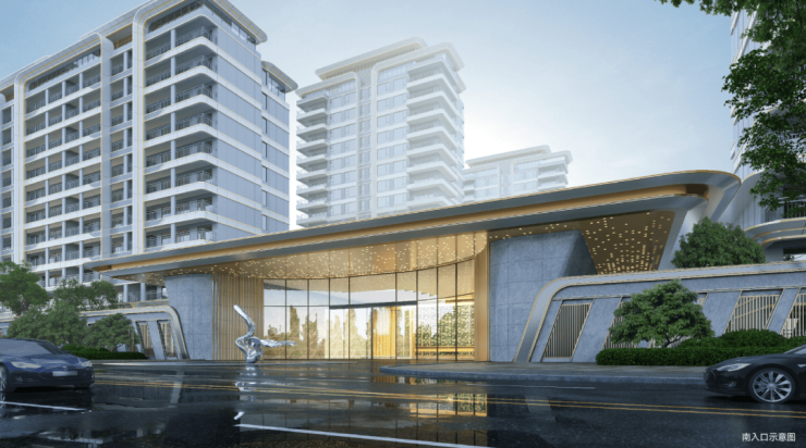 约40米宽酒店式社区门庭,归家大堂/会所/配套一体化设计,营造城市会客厅高雅生活