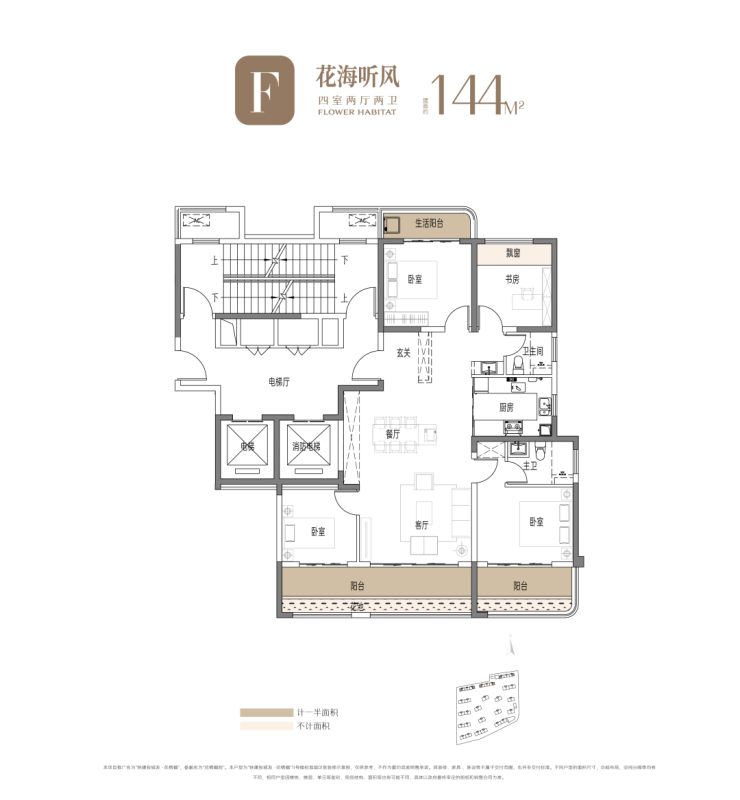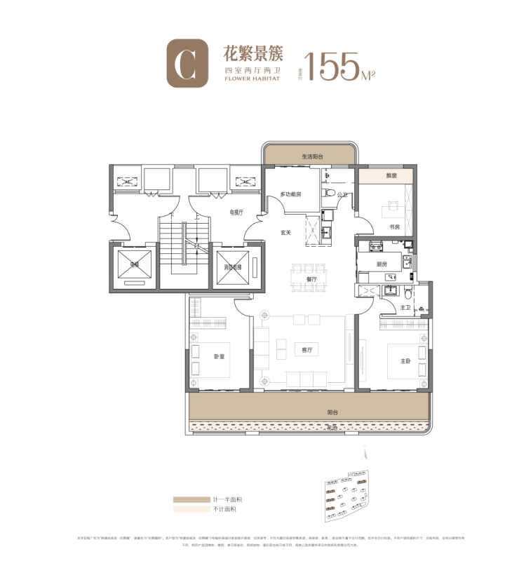 洋房搭配小高层,层高最高约3.1米,户户高赠送,单套综合得房率超100%