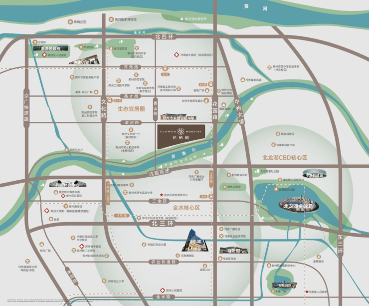 三纵(文化路、花园路、中州大道)四横(滨河路、北三环、连霍高速、北四环)立体交通路网,享半小时生活圈;