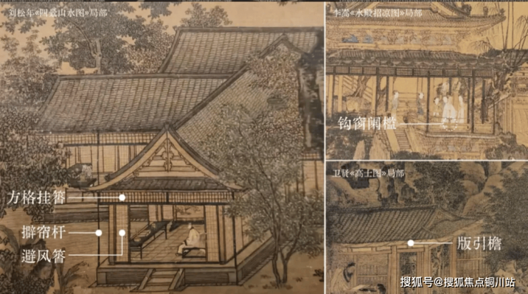 其中,包括三进式王府式归家礼序的还原;双重歇山顶、山花、悬鱼、博风板、挂落、栏板卧棂造、寻杖绞角造、雁翅板、复盆柱础、悬挑基座等宋韵构建的还原;雨过天青等宋韵色调的还原;《松风高卧图》和《十二水图·洞庭风细》等宋韵画作的还原;还有藏在乔木、材质和纹路上,诸多吉祥寓意的还原。
