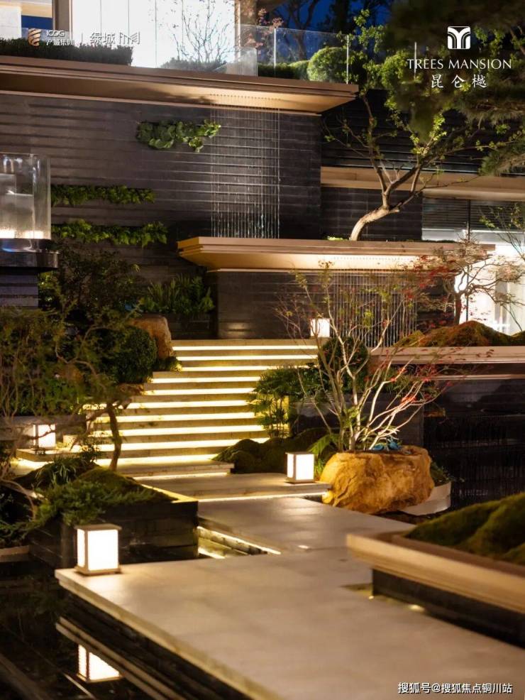 会所下沉式庭院融入立体景观理念,园中双杆黑松、赤松、油松等皆经精心挑选移栽。