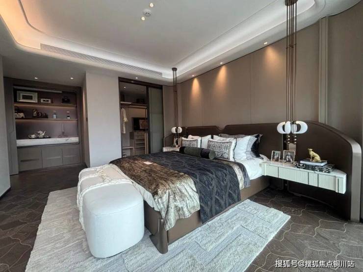 主卧双开门设计,搭配全景落地窗,采光视野绝佳;步入式超大衣帽间,足以容纳男女主人的收藏,名牌包袋、珠宝首饰各有归处;主卫功能齐全,细节考究,满足高阶人居的品质追求。