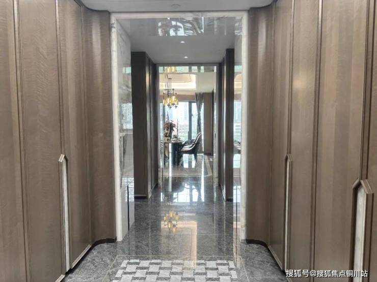 从入户到居家,每一处细节都彰显豪宅质感:两梯两户设计,约10㎡独立前室,保障私密与尊崇;入户配备华为智能锁+奢石拼接木质大门,奢石材质全屋运用,背景墙、玄关处处尽显格调,气场完全不输二七滨江顶豪。
