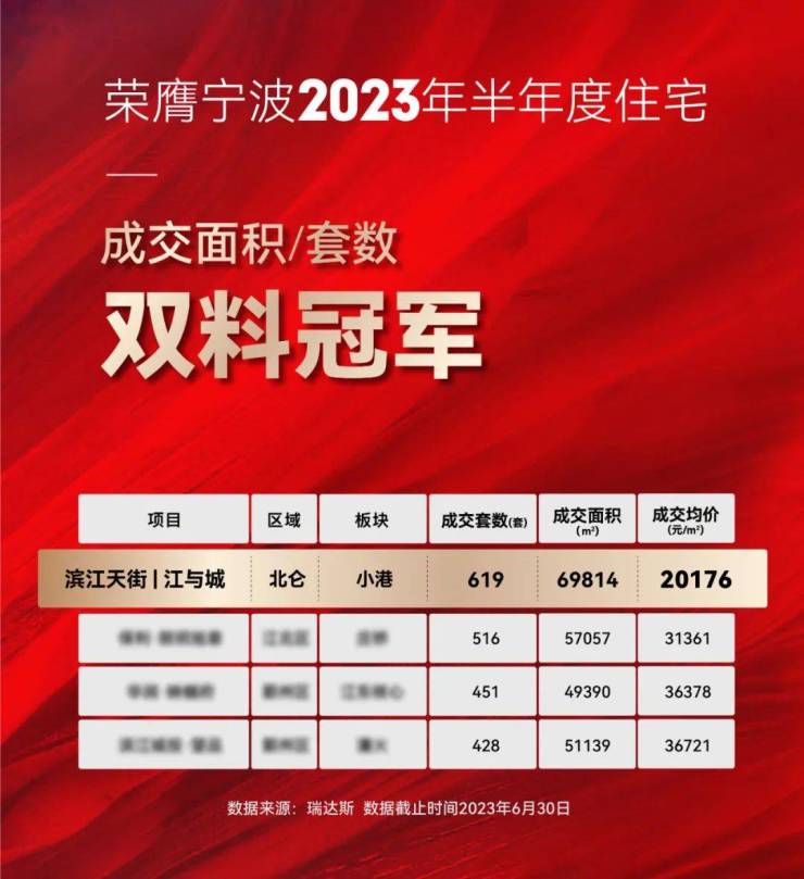 但事实也不尽然,当楼市半年大幕落下,排在全大市新房成交套数第一的,俨然是一个“200万级”的项目——滨江天街·江与城!(数据来源:瑞达斯)