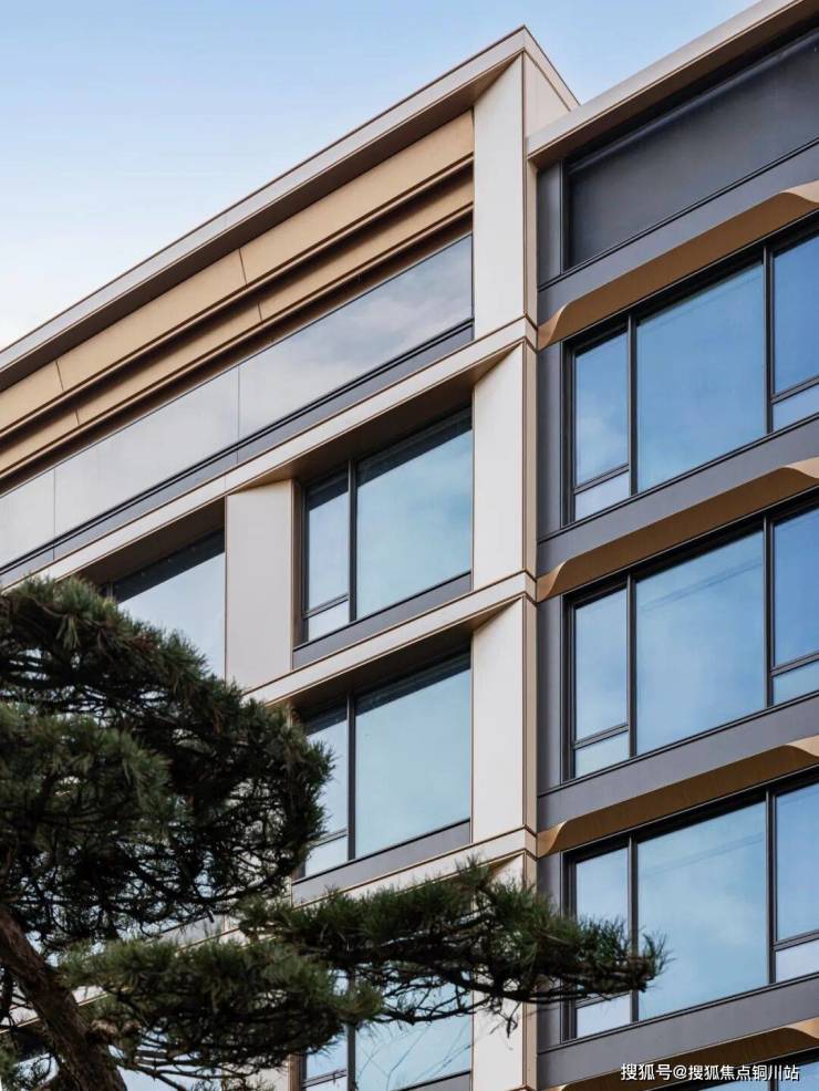 冷色到暖色的过渡颜色,既不冷得刺骨,也不热得刺眼,它是对肉眼更友好的颜色,放在外立面上,独一份的暖光感会让建筑更有温度。