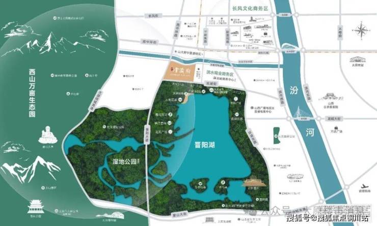 1、 晋阳湖北岸唯一住宅用地,不曾有、不再有的稀缺站位。项目西依西山境,南眺晋阳湖,北观冶峪河,东临汾河水。拥有绝佳的土地资源、极致的景观。
