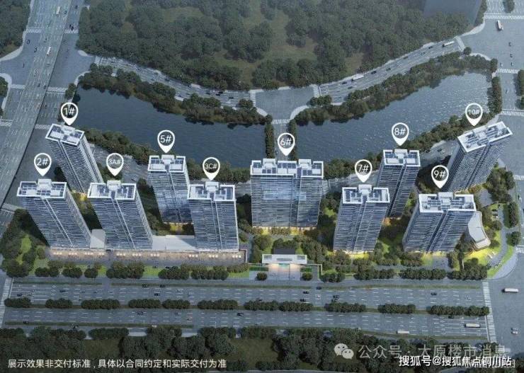 晋阳金茂府,总规划十栋住宅楼,设计为一字型东西排列,最大满足每一户的景观效果。因为小区南侧,已经是晋阳湖公园,所以,未来的景观效果,目前就可以肉眼可见。