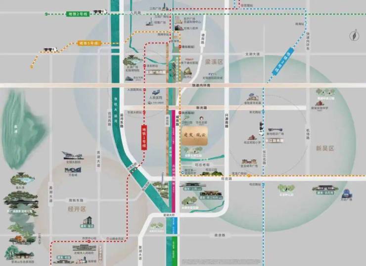 建发观云占位梁溪、新吴、经开三区核心,与梁溪主城紧密相连,古韵新声交织,构筑10分钟黄金生活圈。