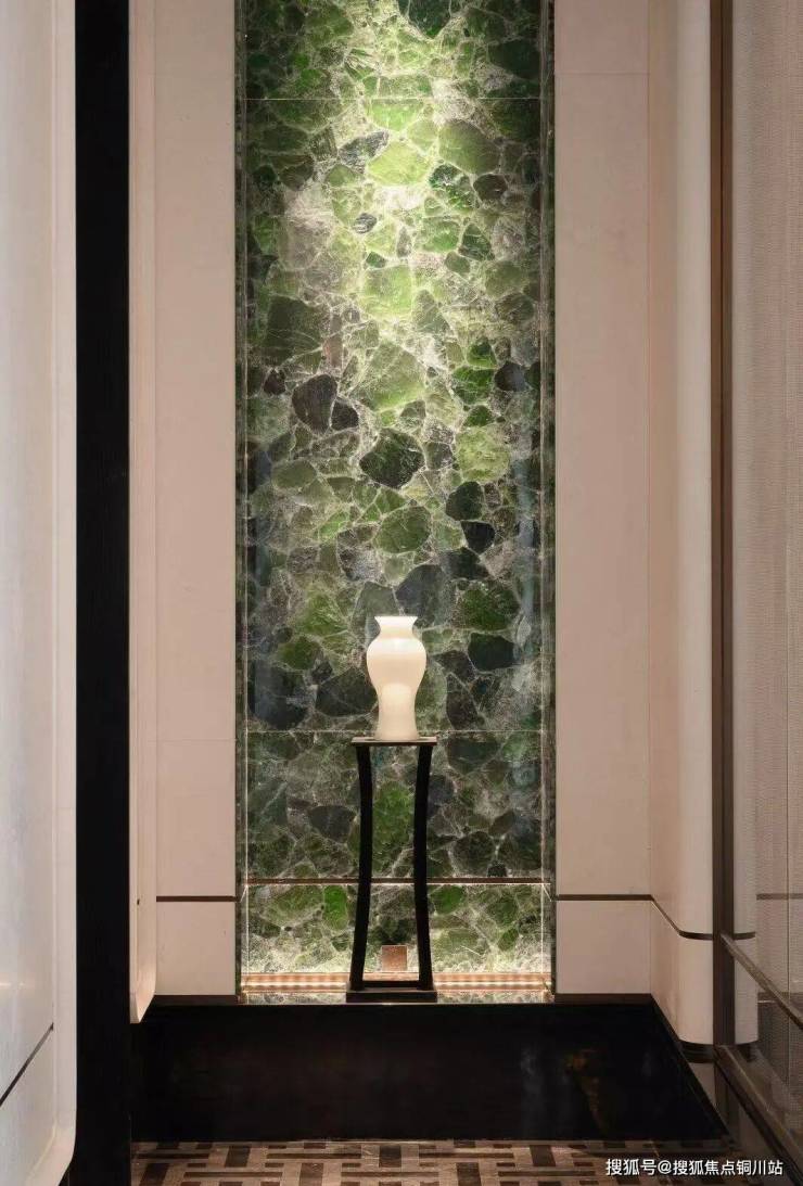 入口处还开苏州先河参考上海半岛酒店打造了“车马院”,设计上使用海鸥丽晶酒店同款接待门,鎏金格纹重顶,工艺美术大师杨恒清艺术雕塑,整面范思哲黑流水景墙…满满的归家的尊贵感和仪式感!
