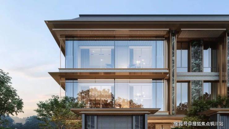 别墅外立面设计受到浓厚的文化气息,又展现出现代设计的精简与流畅。金属挂落的运用,则更添几分现代感,同时又恰到好处地与传统的雕刻工艺相呼应,使建筑整体风格既有历史的厚重感,又不乏时尚的动感。