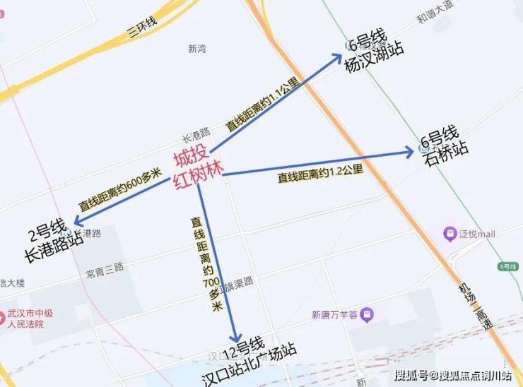 行——近享汉口火车站;2号线(长港路站)、6号线(石桥站、杨汊湖站)、12号线(汉口站北广场站,在建)、13号线(规划)四轨交汇。