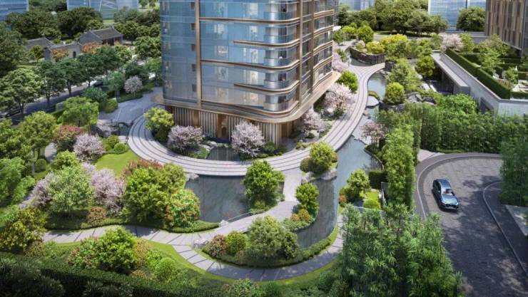 景观设计上,恒隆府以寄畅园为灵感,刻画“林山谷水院”五重景观,再现水墨江南的优雅情境。