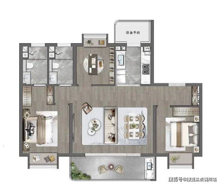 建面约122㎡舒阔三房:南北窗对向通风+独立服务阳台+约6米宽厅,实用性与尺度感拉满;客厅阳台一体化设计,带来奢侈的视觉享受;动静分区,提高居住舒适度。
