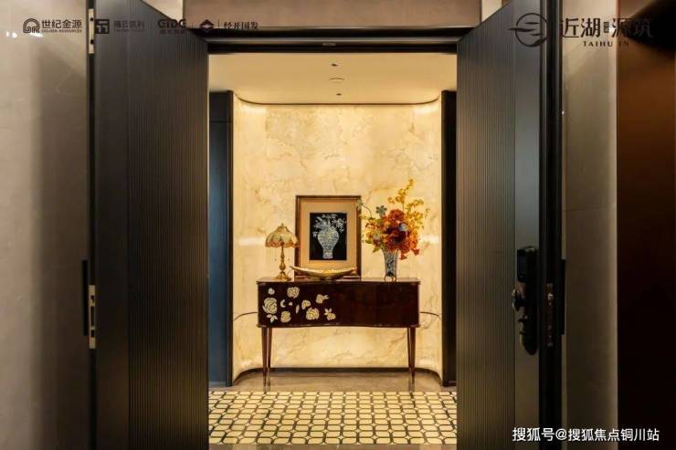 标准之外,约198㎡户型入户重工铸铝装甲门,千万级豪宅同款,厚度和重量要比普通防盗门厚重很多,搭配玄关透光玉石,质感、审美远超周边新盘。