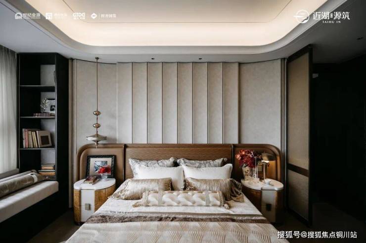 整体开间约4米的次套卧,单独设计于一角,同样带独立衣帽间+卫生间。重点是,2个套房都带有大尺度飘窗,可以足不出户最大限度的欣赏湖景~