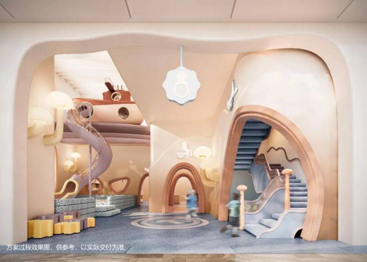他们将这个戏水空间设置在了会所的下方,并在会所的甲板上引了一道飞瀑下来,于是水也成为了情绪的制造机。它不只是儿童的戏水空间,在会所中聚会的人,在一旁等待的父母,在园林中静坐的人,都能感受到水的情绪。