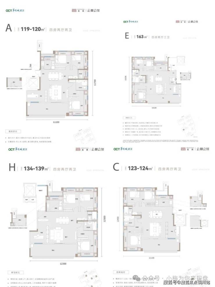 首开主力户型:建面约120㎡(四房)、134㎡、163㎡,均实现“负公摊”,120㎡户型得房率超100%,空间对标传统140㎡。红坊丨云囍公馆,作为武汉首个四代纯低密摩登洋房,超高得房率的新一代标准还得值得让人期待的。