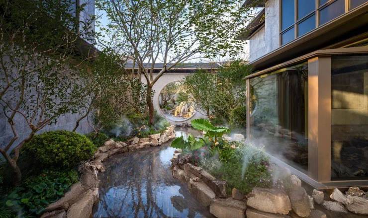 在这个近2万㎡实景示范区中,不仅有私家公园、山水园林、归家动线,甚至街巷脉络、花径月门,以及相当一部分独门独院的东方合院,都已经实景呈现了,每一席大师级合院都依山就势“定制化”打造,将唐风宋韵与当代美学完美融合。