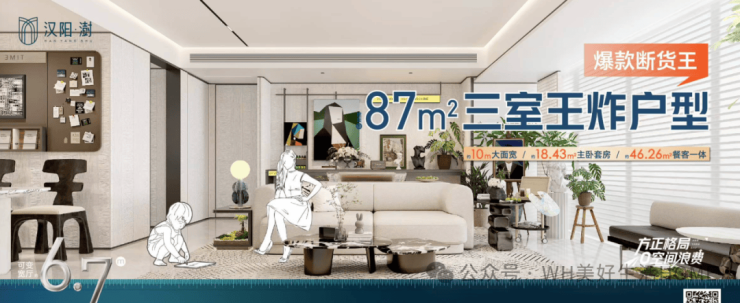 约87㎡户型则实现了“不可能的任务”:三开间朝南,约10米南向面宽、约6.7米南向阳台,在有限面积内实现三房两卫的完整功能。 主卧面积达约18.4㎡,两个次卧开间也达到约2.8-3米,彻底告别传统小户型的局促感。