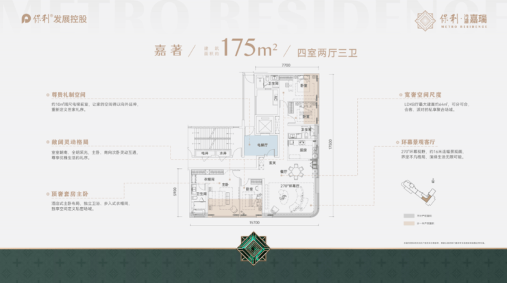 其户型坚守了保利一以贯之空间细节设计,同时在装修层面提出了,一定要比同为豪宅地段、同价位的产品品质更高