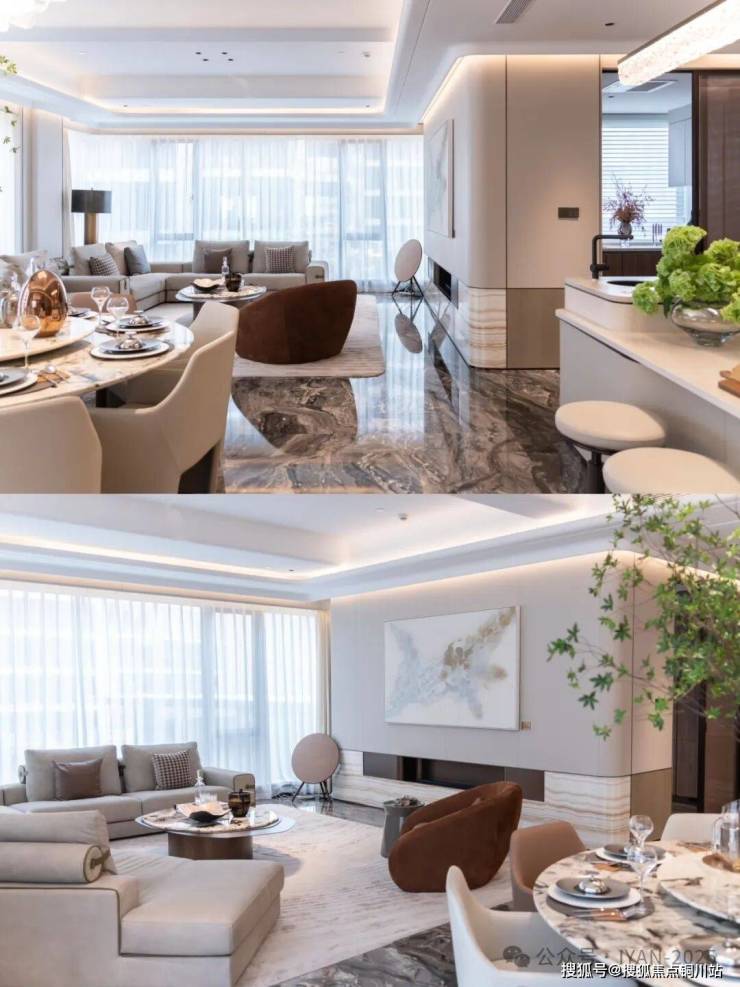 主力户型320-360㎡精装大平层,采用LDKB一体化设计,南向全套房布局,层高约3.6米,搭配约12-24米南向采光面。全屋配置嘉格纳厨电、铂浪高卫浴、大金空调地暖系统,精装标准对标顶豪公寓。