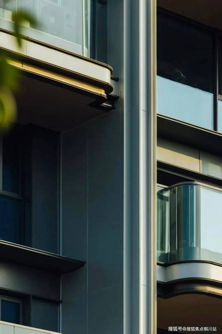 踏入示范区,建筑的质感与生活的感受同时被唤醒。浅灰色立面与现代巨幕玻璃窗的结合,勾勒出简约而气宇轩昂的建筑轮廓。竖向线条与层间圆弧挑板不仅解决了四代住宅的隐私考量,更赋予了建筑独特的艺术美感。