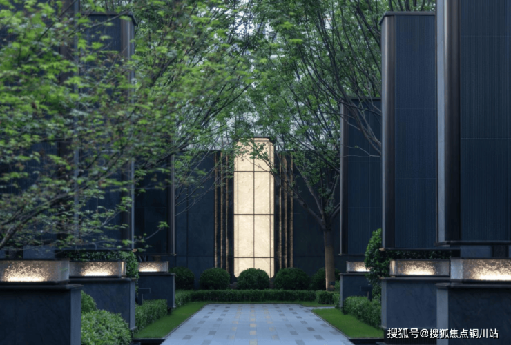 约55m恢弘阔门,奢配星空顶,打造类酒店式落客礼遇,同时内部以高定级双入户大堂,打造双重归家动线,酒店大堂应用质感金属,辅以石材,地下光厅中则打造了艺术星空顶,无感通行。