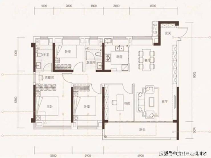 起步面积100平,边户也只有116平,在保证各个功能分区尺度的前提下,两个主力面积段都控制在120平以下,整体的面积段对于青誉府这个项目以偏刚需的定位来说是相对友好的上手面积段。