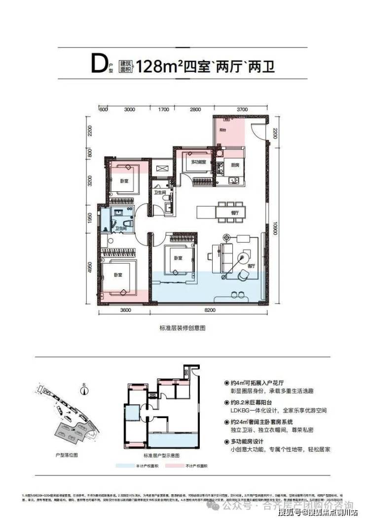 T4——128㎡南北向舒适型四房,使用率约99.56%花厅入户开门即见森活约6.5米宴会级餐厅宴请聚会尽显圈层排面无主梁设计拥有极高改造空间约8.2米巨幕景观阳台一城璀璨尽揽于怀
