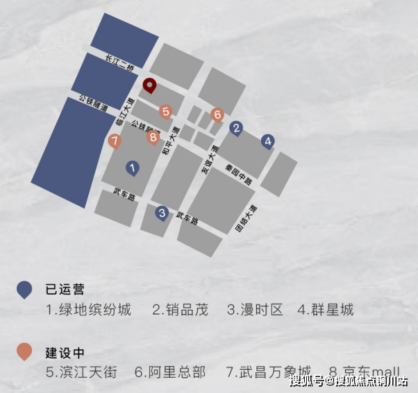 项目紧邻龙湖武昌滨江天街(预计2025年开业)、阿里巴巴华中总部商业体(预计2025年1月1日开业)、华润万象城、长江中心等超级商业体,商业全面升级,焕发新能量。