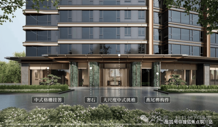 选材上,采用大面积玻璃+铝板+奢石组合,奢华不言自明。奢石主要用于建筑底部的立柱,豪宅质感拉满。造型上,建筑顶部和底部都创新了中式飞檐设计,识别度相当高。如此用心到极致的建筑,不只是城市天际线的一道风景,更是值得引以为豪的家。